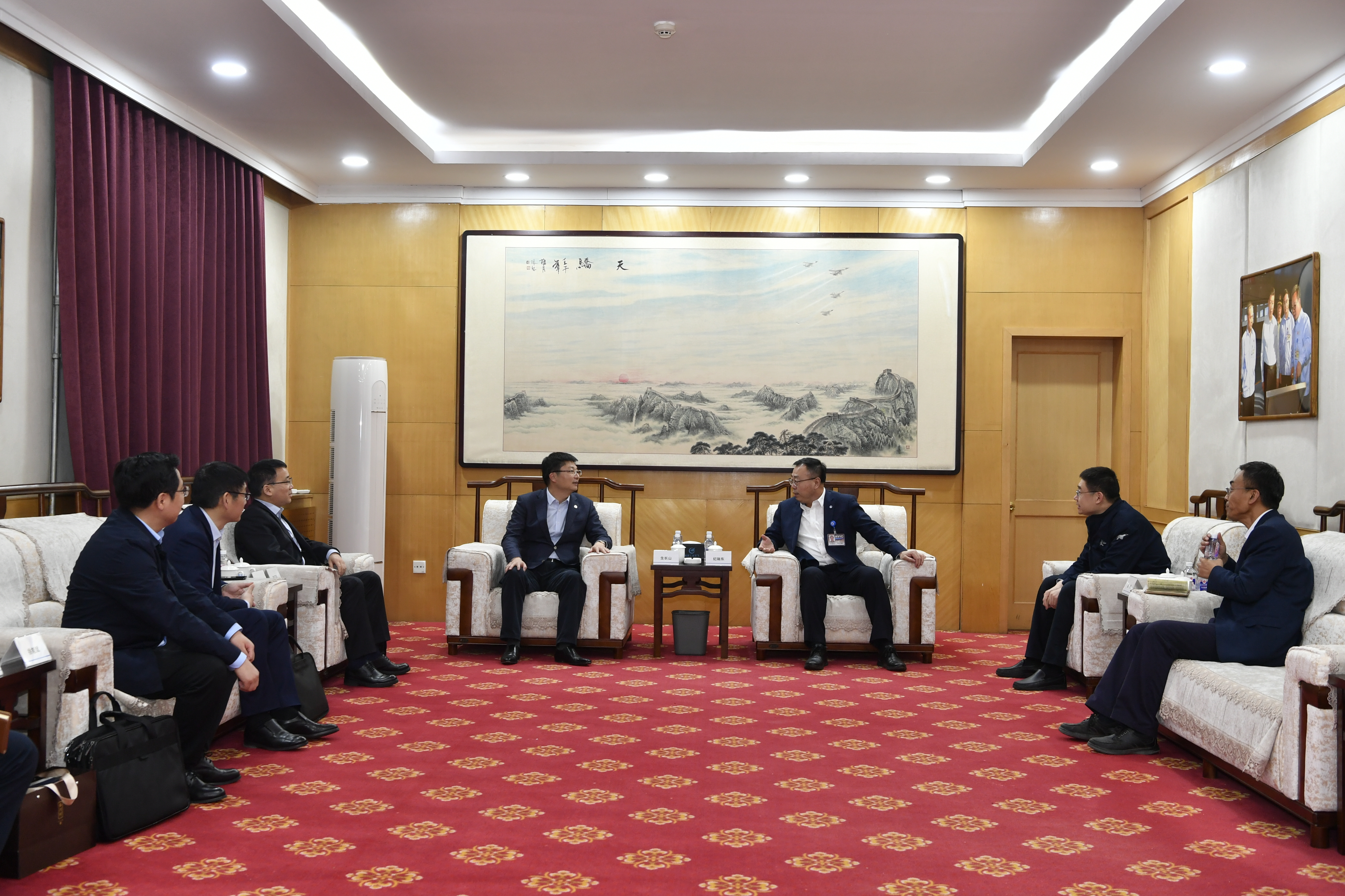 日前,寶勝股份黨委書記、董事長生長山率隊拜訪航空工業沈飛黨委書記、董事長紀瑞東,雙方圍繞沈飛線束公司下一步發展思路和航空線束研發中心和生產基地項目進行深入交流。