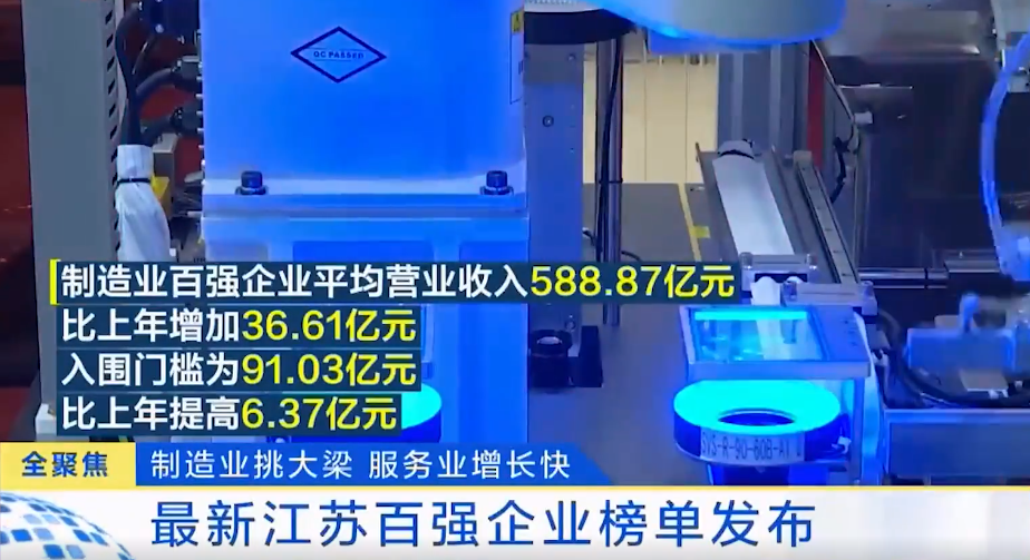 統計顯示,江蘇百強企業入圍門檻為297.12億元,19家國有企業上榜,營業收入超千億元企業15家。制造業百強企業平均營業收入588.87億元、比上年增加36.61億元,入圍門檻為91.03億元、比上年提高6.37億元,企業研發投入990.16億元、增長11.65%。入圍企業中,國有企業為9家。