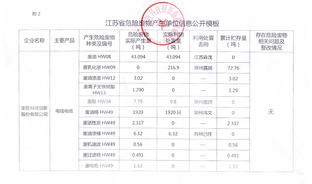 危險廢物產生量和處置量明細表