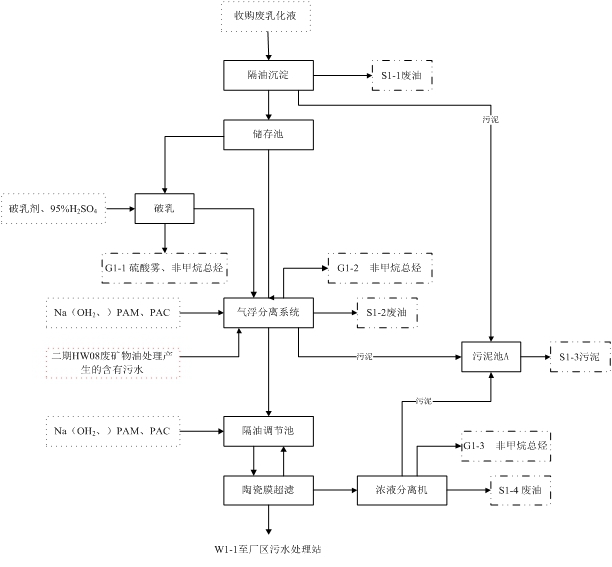 經營規模:處置利用油/水、烴/水混合物或廢乳化液(HW09)15000t/a。