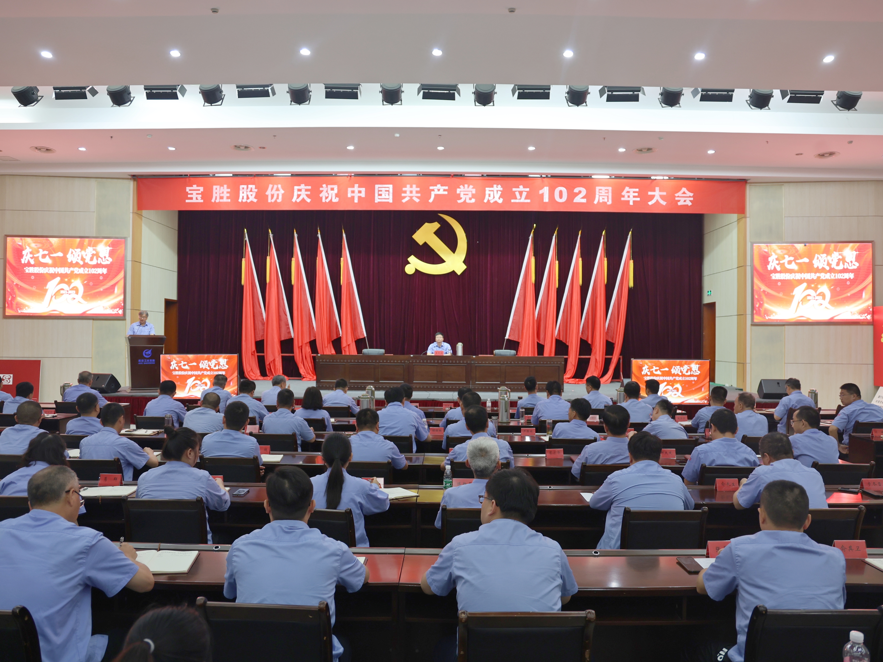 在中國共產黨成立102周年之際,2023年7月1日上午,寶勝股份隆重召開慶祝大會,組織重溫入黨誓詞,表彰先進典型,黨委書記講授專題黨課,動員和激勵寶勝全體黨員、干部職工傳承紅色基因,緊緊圍繞公司“11256”發展規劃,改革攻堅、奮發有為,為實現中國式現代化寶勝新實踐而不懈奮斗。會議由寶勝股份黨委副書記、工會主席宋宇峰主持。