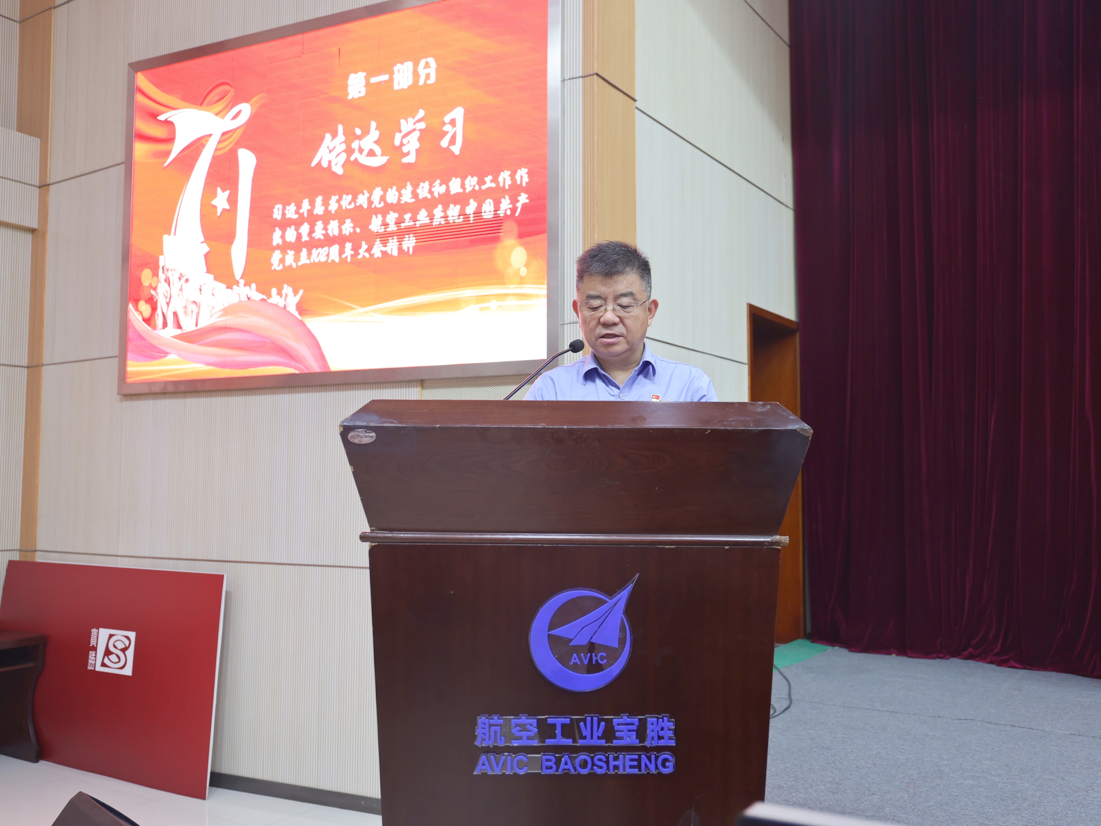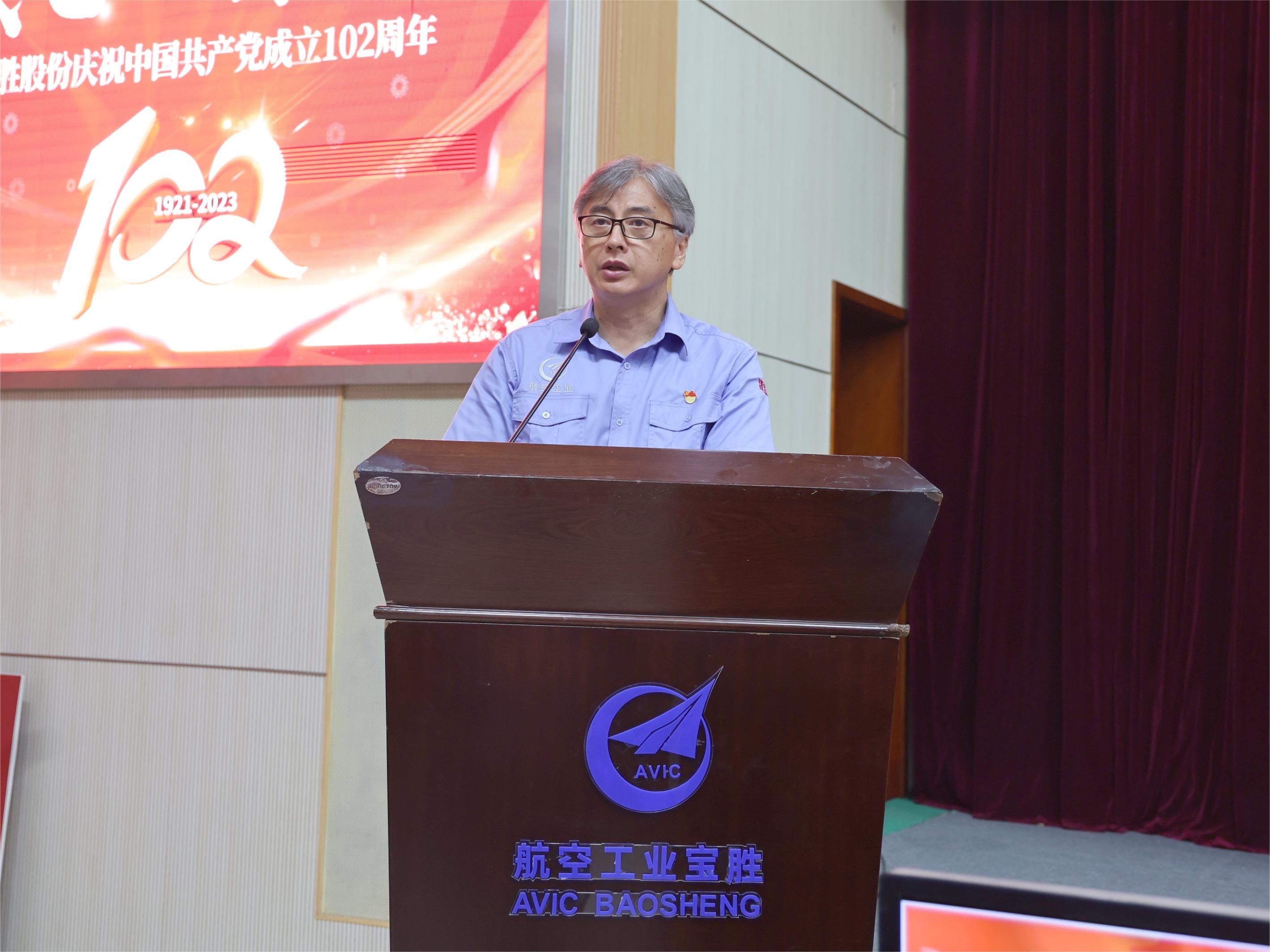 寶勝股份黨委副書記、總經理邵文林傳達學習習近平總書記對黨的建設和組織工作作出的重要指示、航空工業慶祝中國共產黨成立102周年大會精神。