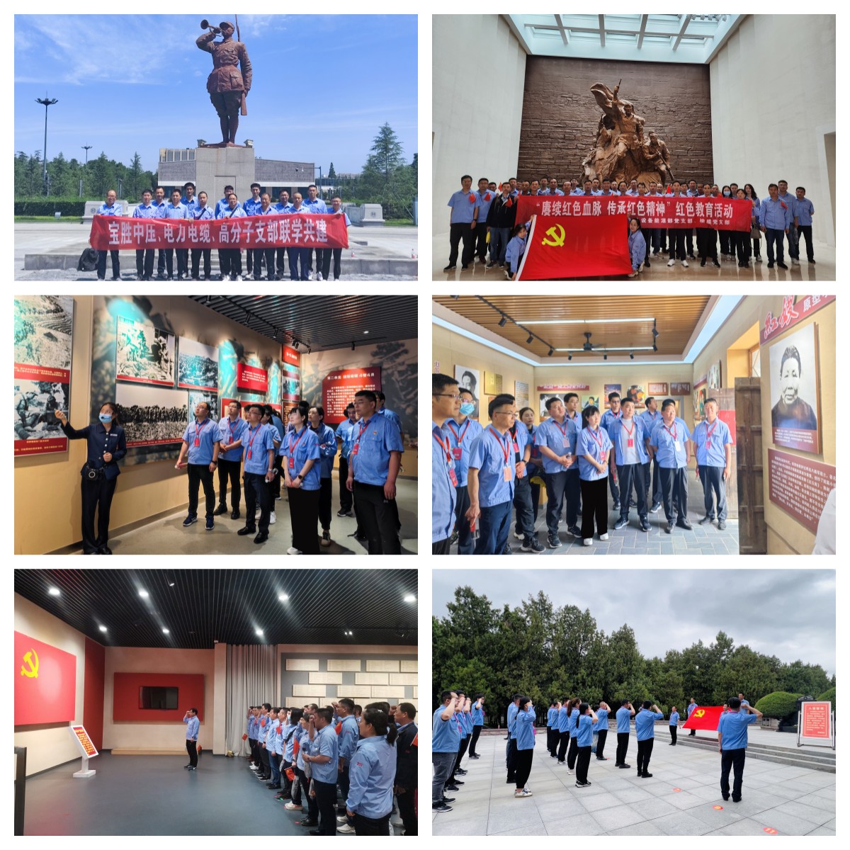 寶勝山東、中壓、橡纜、設備能源部、電力電纜、高分子等黨支部積極開展慶“七一”參觀紅色教育基地活動,組織全體黨員前往沂蒙紅嫂紀念館、孟良崮戰役紀念館、鹽城新四軍紀念館等地重溫革命歷史,學習革命先烈英勇事跡,引領教育廣大黨員們從紅色記憶中汲取奮進力量,追憶入黨初心?;顒又?,黨員們懷著崇高的敬意走進一個個展廳內參觀學習,通過閱覽文獻資料、觀看情景劇等形式,深刻了解了革命先烈為黨、為人民事業無私奉獻的紅色歷史,身臨其境地接受了一次革命傳統教育。最后,黨員們面向鮮紅的黨旗,高高舉起右拳,以鏗鏘有力的聲音重溫了入黨誓詞。