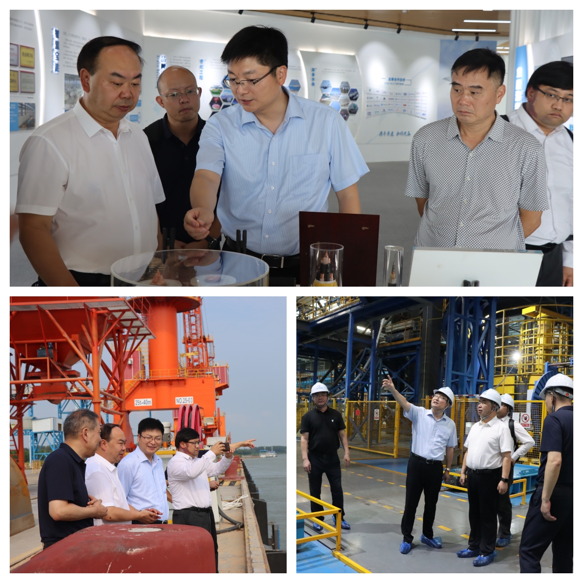 楊平一行先后考察了寶勝海纜立塔生產線、5萬噸級海纜碼頭等現場,聽取了關于產品研發、技術創新、智能工廠建設等方面的匯報。