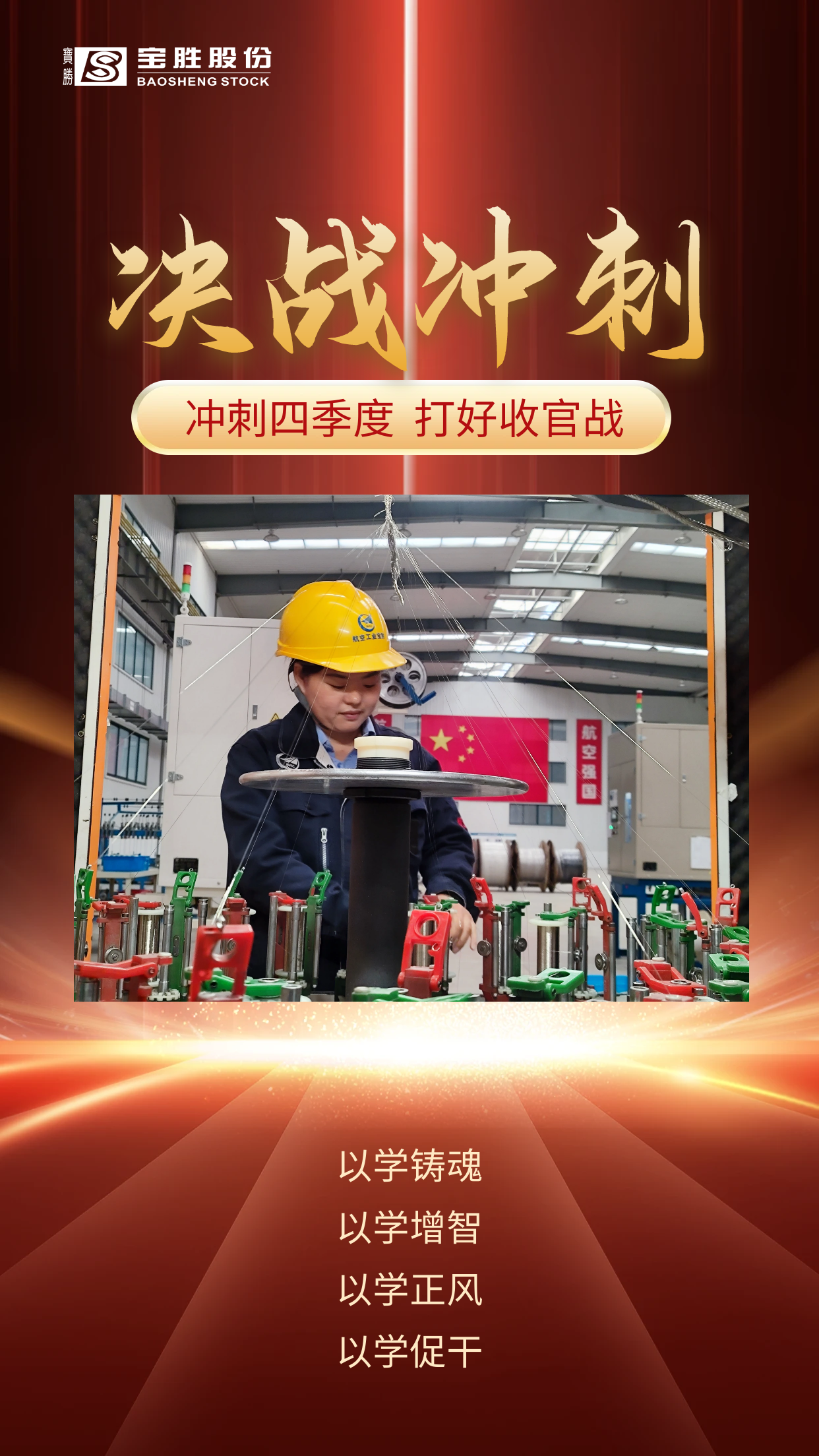 【開欄語】當前,寶勝股份正在深入開展學習貫徹習近平新時代中國特色社會主義思想主題教育。同時,科研生產經營任務已進入全面沖刺階段,全公司上下牢牢把握“學思想、強黨性、重實踐、建新功”的總要求,堅持以學促干保任務、保質量、保成功、保交付,用高質量完成科研生產任務的實際成效檢驗主題教育成果。公司官微特開設《沖刺四季度·打好收官戰》專欄,聚焦各單位沖刺四季度具體實踐及實際成效開展系列報道。敬請關注!