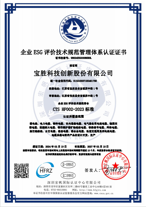 近日,《2023年度寶勝科技創新股份有限公司環境、社會和治理(ESG)報告》在上海證券交易所官網及寶勝股份公司官網正式發布。這是2011年以來寶勝連續第13年主動披露相關報告(2011年~2022年為社會責任報告,2023年為ESG報告)。在此期間,公司還通過了第三方認證評審,順利取得了《企業 ESG 評價技術規范管理體系認證》證書。