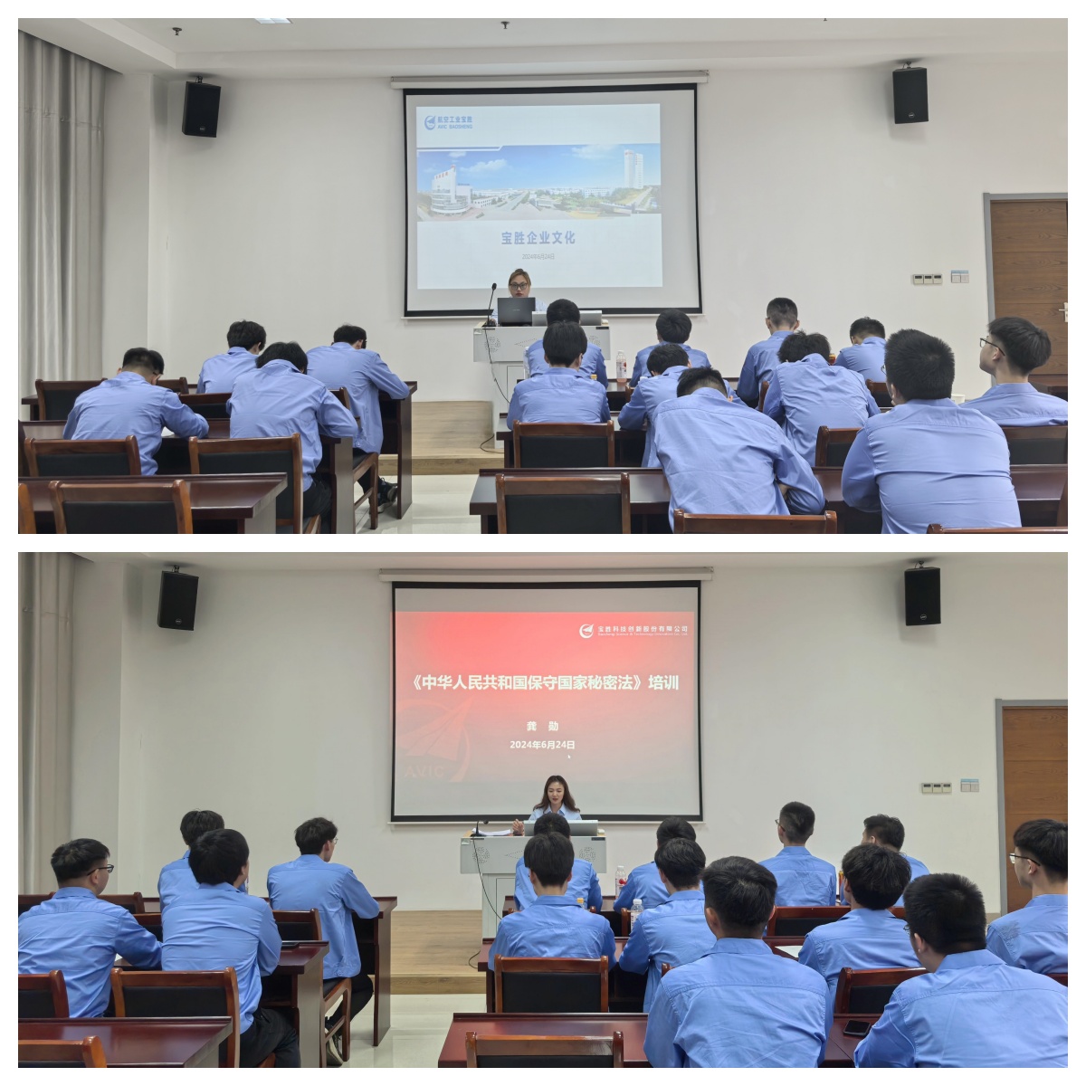 當(dāng)天下午,哈理工學(xué)員們在寶勝科技城黨校培訓(xùn)中心接受了理論知識培訓(xùn)。兩位講師分別就企業(yè)文化與保密知識進(jìn)行了專項講解。在企業(yè)文化課程中,宣傳主管聚焦寶勝“11366”發(fā)展規(guī)劃,緊緊圍繞企業(yè)發(fā)展大局和中心工作,闡述了寶勝高質(zhì)量發(fā)展的方向和路徑,進(jìn)一步增強(qiáng)了學(xué)員對寶勝文化的認(rèn)同感;保密主管圍繞保密嚴(yán)峻形勢及其重要性、保密基本常識、落實(shí)保密責(zé)任、提高保密成效等方面內(nèi)容,結(jié)合大量實(shí)踐案例,深入淺出講解了保密相關(guān)知識和做好保密工作的關(guān)鍵,切實(shí)增強(qiáng)了學(xué)員們的保密意識和風(fēng)險防范能力。